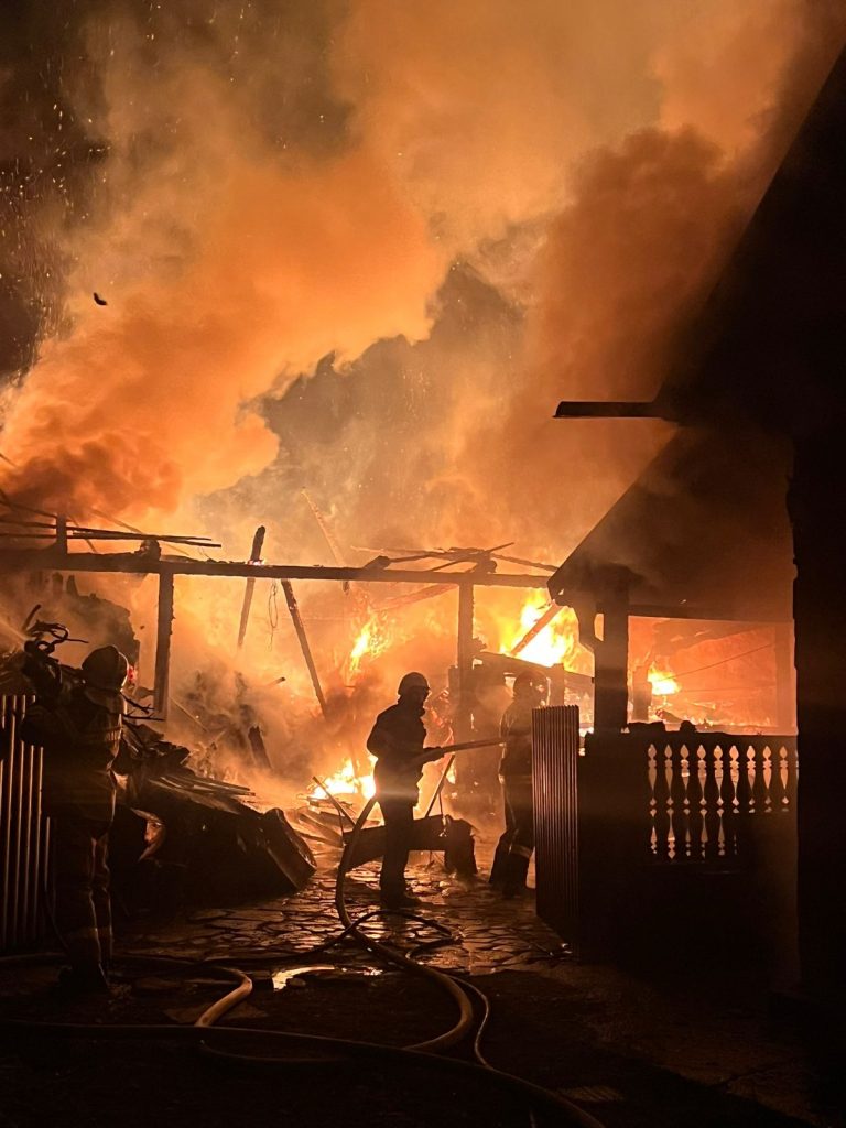 La sosirea echipajelor, ardeau generalizat casa de locuit și două anexe gospodărești, cu pericol de propagare la vecinătăți.