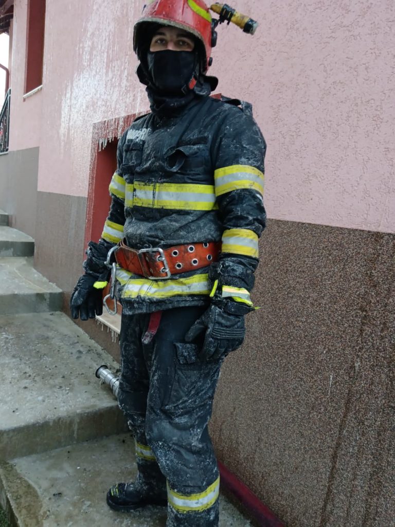 Pompierii au intervenit în condiții extreme de ger, cu uniformele înghețate.